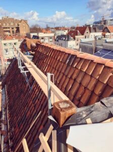 Het vervangen van nokvorsten houdt in dat de dakpannen die de bovenste rand van het dak bedekken (de nok) worden verwijderd en vervangen. Dit is nodig wanneer de nokvorsten beschadigd zijn of loszitten. De oude vorsten worden verwijderd, de onderliggende mortel of bevestiging wordt vernieuwd, en vervolgens worden nieuwe nokvorsten geplaatst en vastgezet. Dit zorgt voor een stevige, waterdichte afsluiting van de daknok.